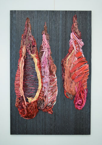 Throughout university I focused on the use of traditional media within the scope of drawing and painting. In recent years, I have been experimenting with tire shavings; a non- traditional material and industrial bi-product of my day job. Initially the shavings functioned as only two-dimensional elements. However, after experimenting with them, I realized their great potential as a sculptural material and embarked on a totally new phase of artistic exploration.